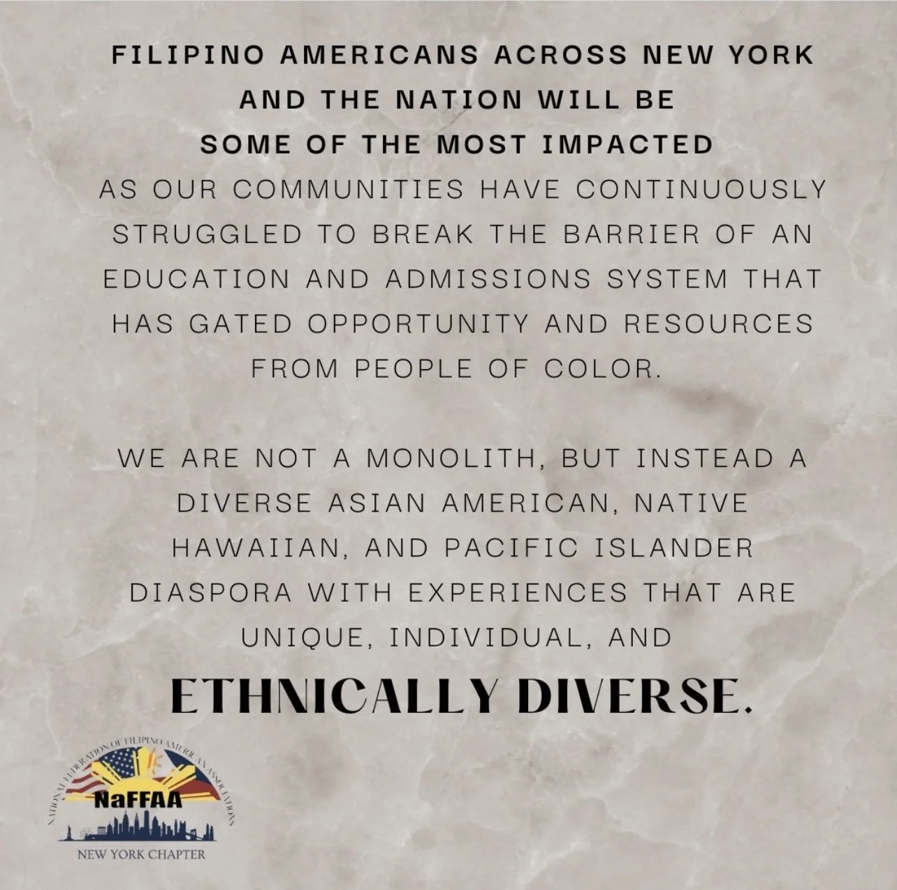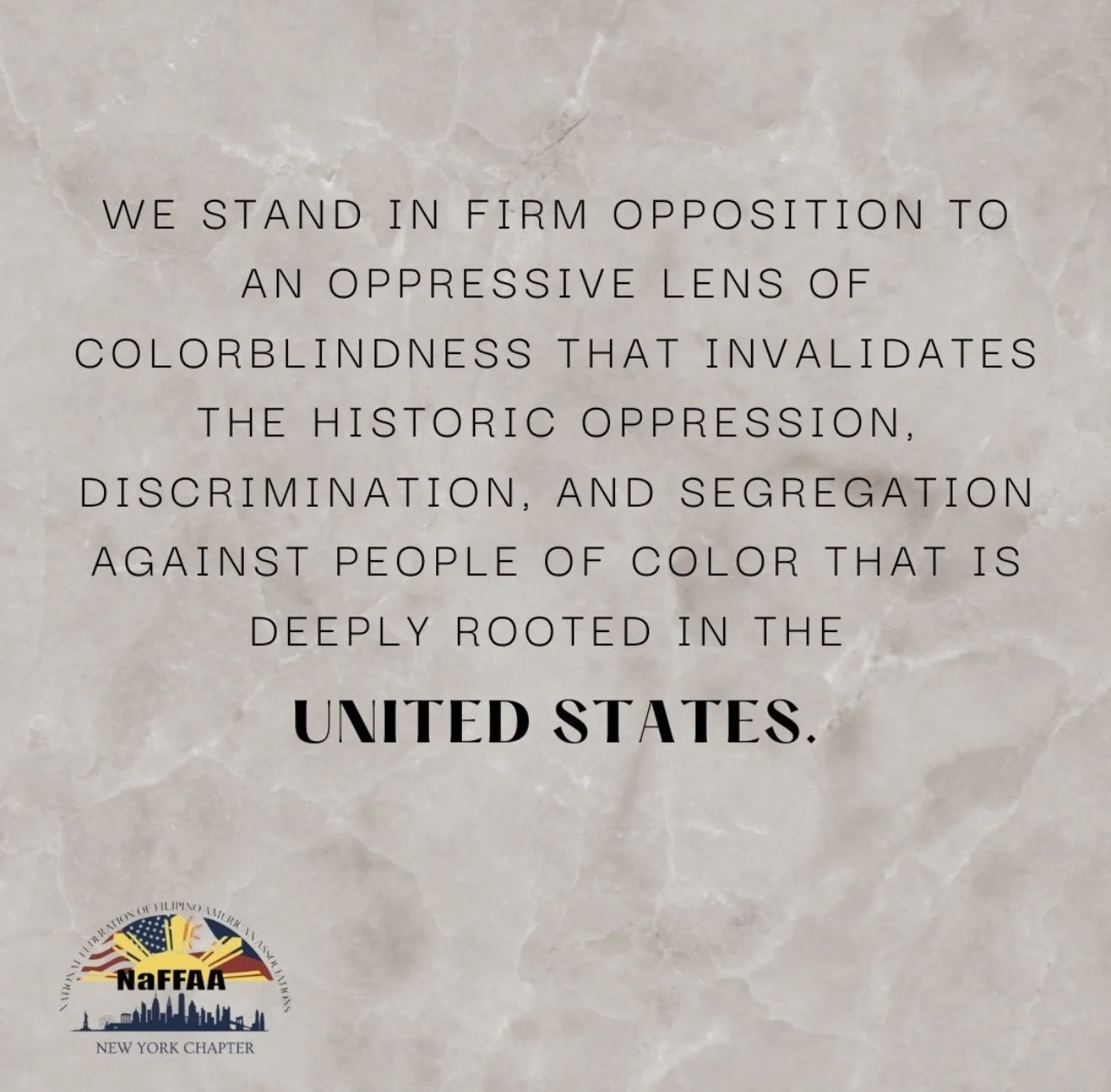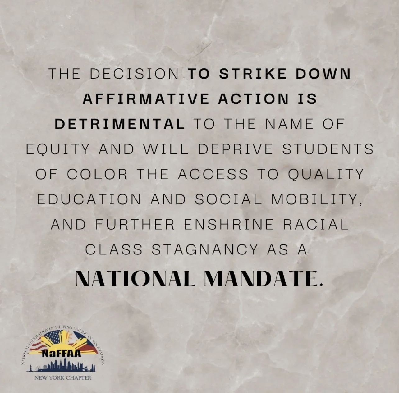 “NaFFAA-NY condemns and stands in opposition to the ruling of the Supreme Court of the United States to strike down Affirmative Action.”